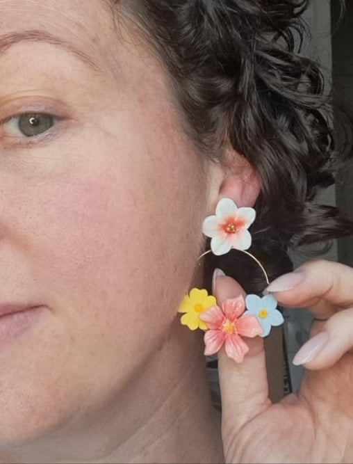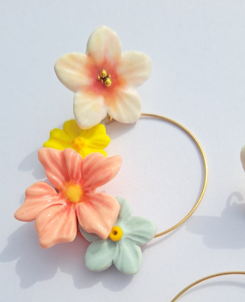 ◇Les créoles seules, fines et aériennes, elles sont parsemées de fleurs colorées.