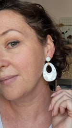 Boucles grandes gouttes montées sur puces avec morceaux de nacre incrustés