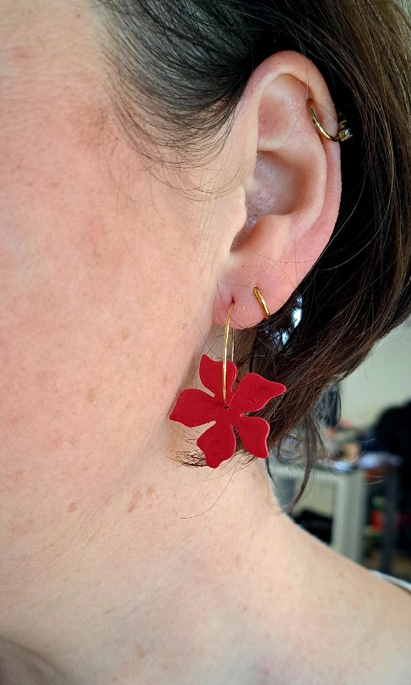 Ces fleurs minimalistes sont montées sur créoles fines. Un must-have pour la saison.